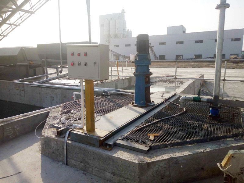 洗车泵抽取经过澄清的回收水,通过洗车水注水管注入搅拌车做洗车用水,接下来的污水及残渣排入泄料槽,借助泄料槽冲洗水泵出去搅拌池的污水形成高速流...